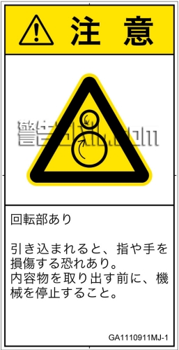 危険の種類: 機械的な危険  引き込み(逆回転ローラ)