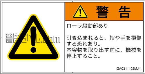 危険の種類: 機械的な危険  引き込み(ローラ)