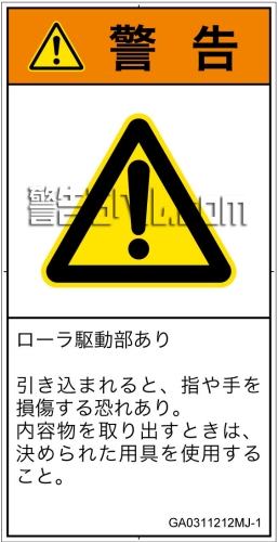 危険の種類: 機械的な危険  引き込み(ローラ)