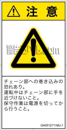 危険の種類: 機械的な危険  引き込み(チェーン)