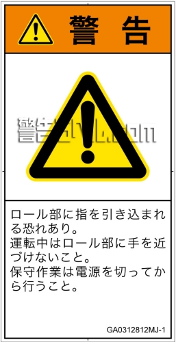 危険の種類: 機械的な危険  引き込み(ローラ)