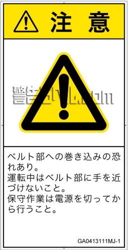 危険の種類: 機械的な危険  引き込み(ベルト)
