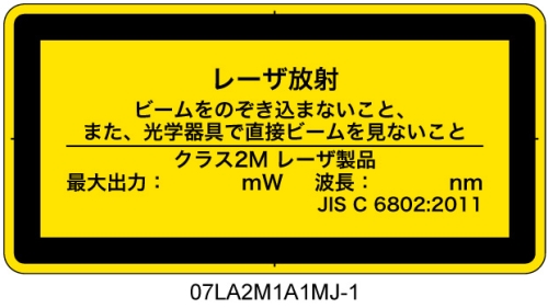 07LA2M1A1 レーザ放射 クラス2M レーザ