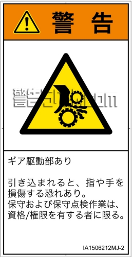 危険の種類: 機械的な危険  引き込み(ギア)