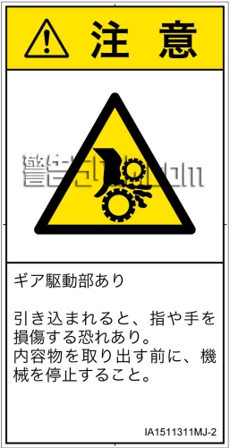 危険の種類: 機械的な危険  引き込み(ギア)