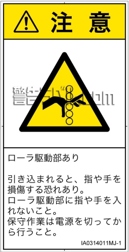 危険の種類: 機械的な危険  引き込み(ローラ)