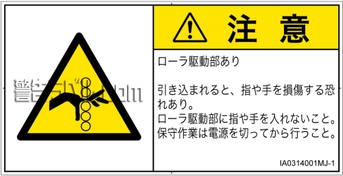 危険の種類: 機械的な危険  引き込み(ローラ)