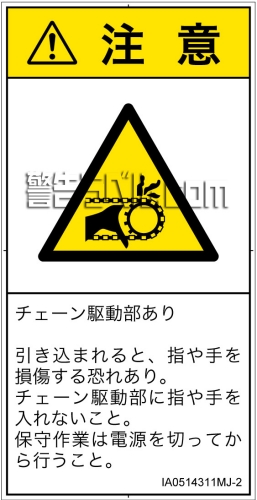 危険の種類: 機械的な危険  引き込み(チェーン)