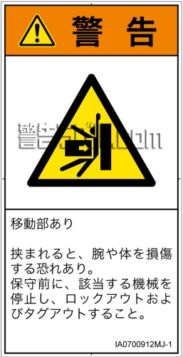 保守前に、該当する機械を停止し、ロックアウトおよびタグアウトすること。