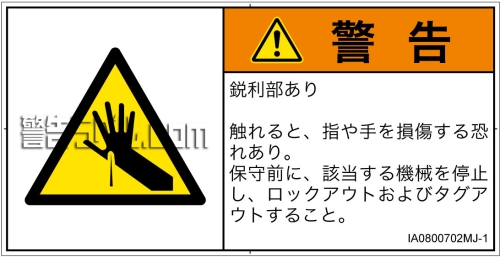 保守前に、該当する機械を停止し、ロックアウトおよびタグアウトすること。