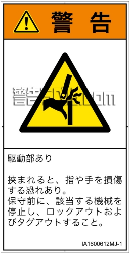 保守前に、該当する機械を停止し、ロックアウトおよびタグアウトすること。
