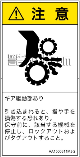 保守前に、該当する機械を停止し、ロックアウトおよびタグアウトすること。