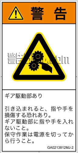 危険の種類: 機械的な危険  引き込み(ギア)