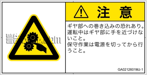 危険の種類: 機械的な危険  引き込み(ギア)