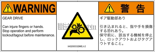 保守前に、該当する機械を停止し、ロックアウトおよびタグアウトすること。