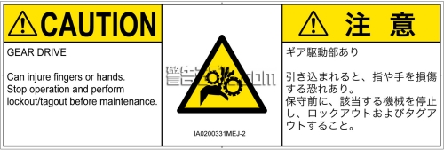 保守前に、該当する機械を停止し、ロックアウトおよびタグアウトすること。