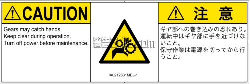 危険の種類: 機械的な危険  引き込み(ギア)