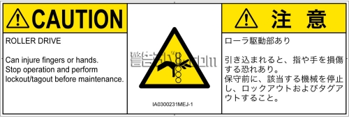 危険の種類: 機械的な危険  引き込み(ローラ)