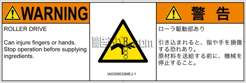 危険の種類: 機械的な危険  引き込み(ローラ)