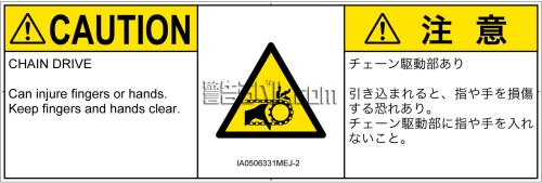 危険の種類: 機械的な危険  引き込み(チェーン)