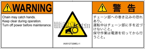 危険の種類: 機械的な危険  引き込み(チェーン)