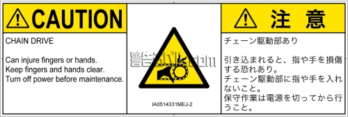 危険の種類: 機械的な危険  引き込み(チェーン)