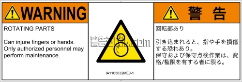 危険の種類: 機械的な危険  引き込み(逆回転ローラ)