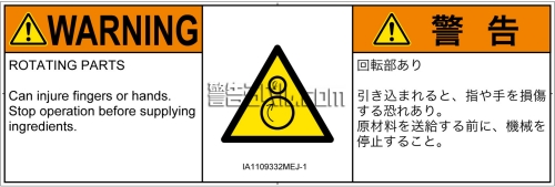 危険の種類: 機械的な危険  引き込み(逆回転ローラ)