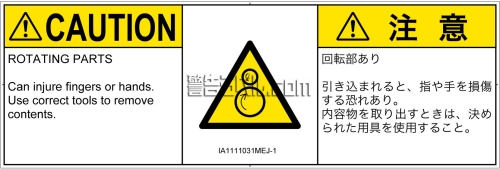 危険の種類: 機械的な危険  引き込み(逆回転ローラ)