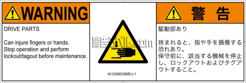 保守前に、該当する機械を停止し、ロックアウトおよびタグアウトすること。