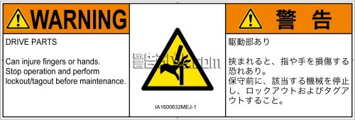 保守前に、該当する機械を停止し、ロックアウトおよびタグアウトすること。