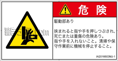 挟まれると指や手を押しつぶされ、死亡または重傷の危険あり。