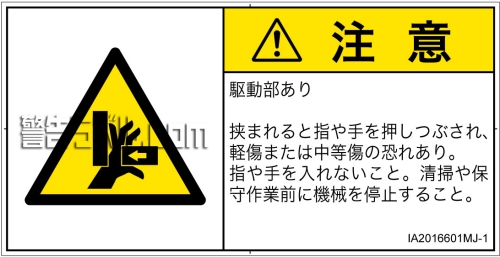 指や手を入れないこと。清掃や保守作業前に機械を停止すること。