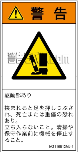 挟まれると足を押しつぶされ、死亡または重傷の恐れあり。
