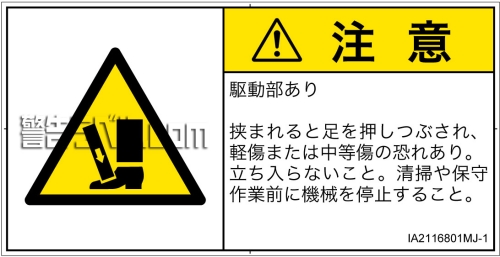 立ち入らないこと。清掃や保守作業前に機械を停止すること。