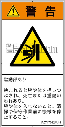 挟まれると腕や体を押しつぶされ、死亡または重傷の恐れあり。