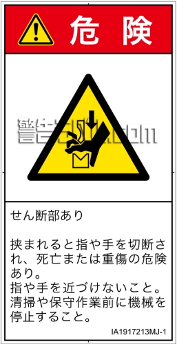 挟まれると指や手を切断され、死亡または重傷の危険あり。