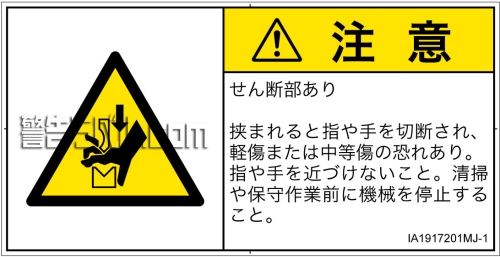 挟まれると指や手を切断され、軽傷または中等傷の恐れあり。