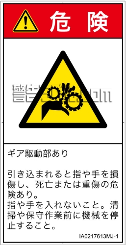 指や手を入れないこと。清掃や保守作業前に機械を停止すること。
