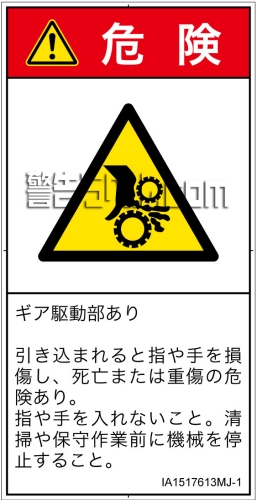 指や手を入れないこと。清掃や保守作業前に機械を停止すること。