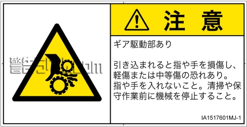 引き込まれると指や手を損傷し、軽傷または中等傷の恐れあり。