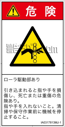 危険の種類: 機械的な危険  引き込み(ローラ)