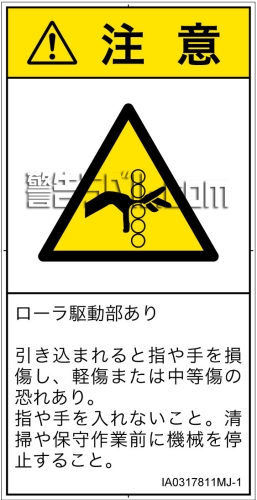 危険の種類: 機械的な危険  引き込み(ローラ)