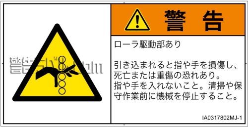 危険の種類: 機械的な危険  引き込み(ローラ)