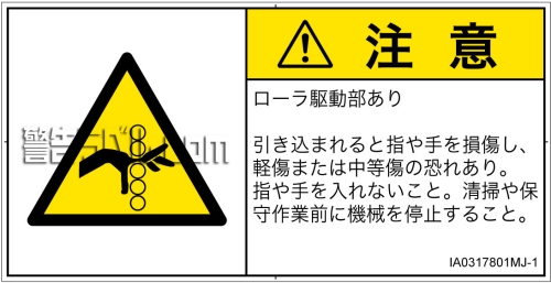 危険の種類: 機械的な危険  引き込み(ローラ)