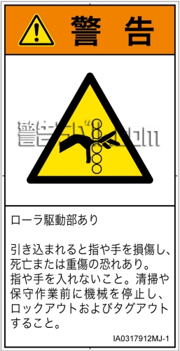 危険の種類: 機械的な危険 引き込み(ローラ)