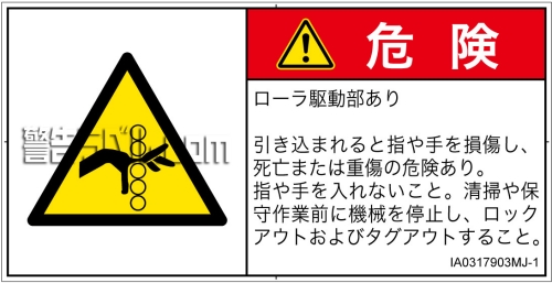 危険の種類: 機械的な危険 引き込み(ローラ)