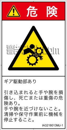危険の種類: 機械的な危険  引き込み(ギア)