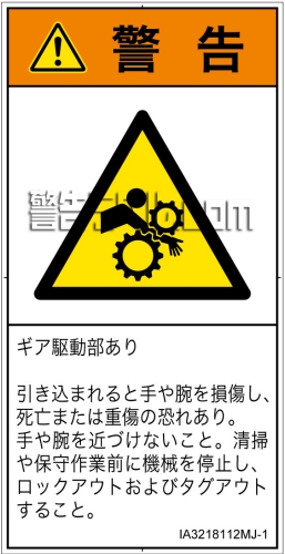 引き込まれると手や腕を損傷し、死亡または重傷の恐れあり。