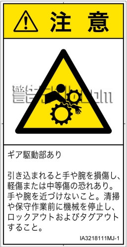 危険の種類: 機械的な危険 引き込み(ギア)